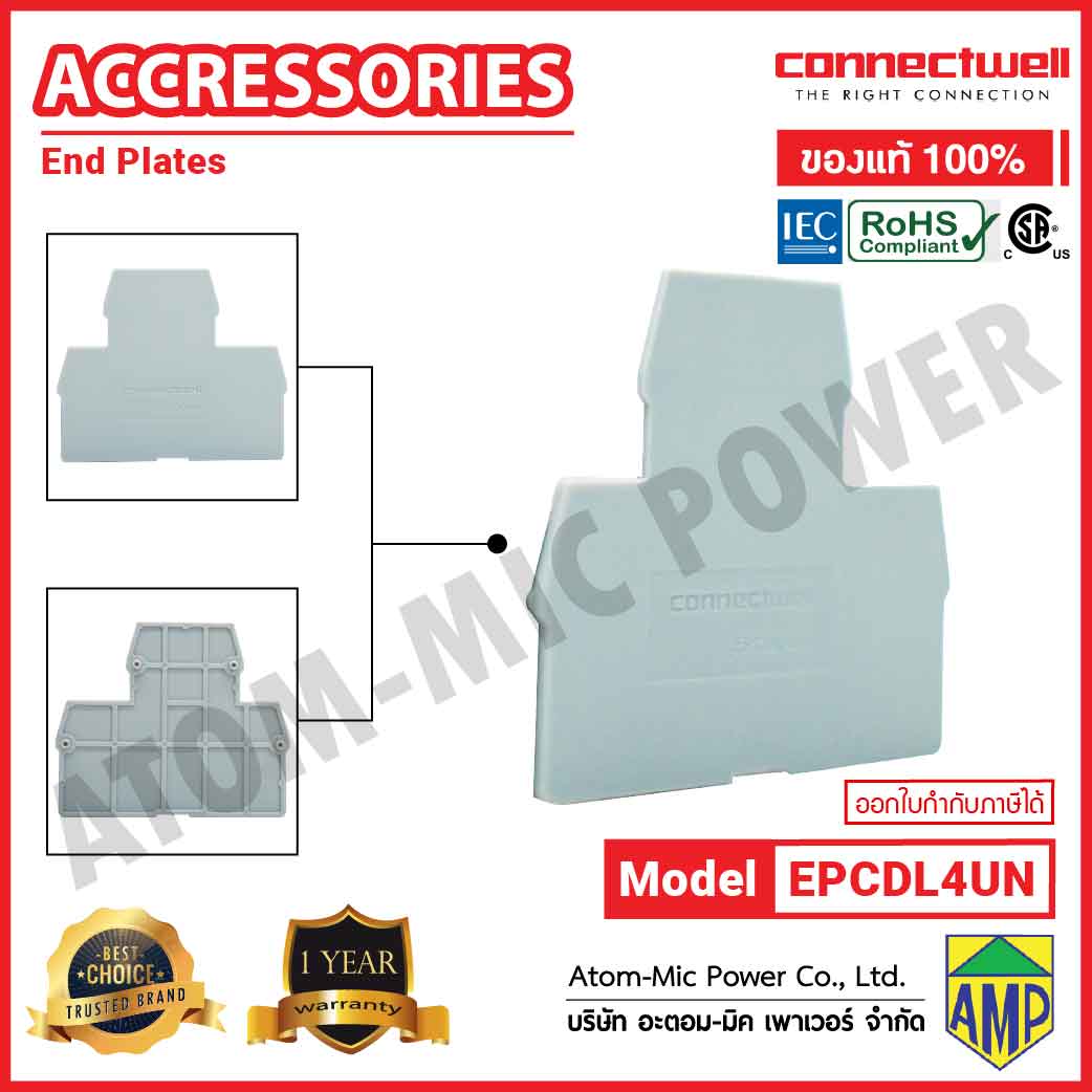 It’s a Connectwell EPCDL4UN End plate for ODL2.5 Series terminal block. End plates are used to cover the open side of sectional DIN Rail mount terminal blocks. They should be used at the end of an assembly of identical terminal blocks or whenever there is a change in the physical size of the terminal block. The End Clamps helps to secure the entire Terminal Block assembly on the Din Rail. End Clamp in Polyamide 66 suitable for Din 32 / Din 35 / Din 35-15 Rails. The End Clamps should be fixed on both sides of the Terminal Block assemblies.