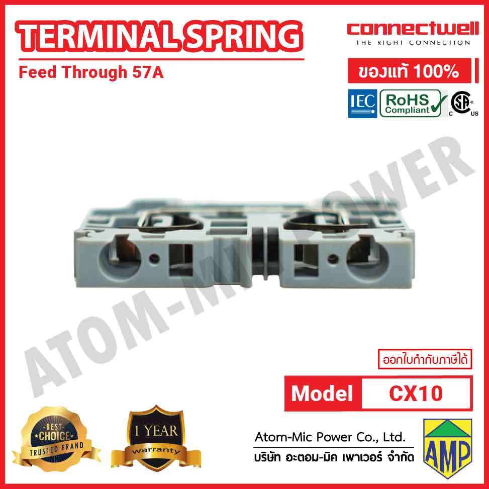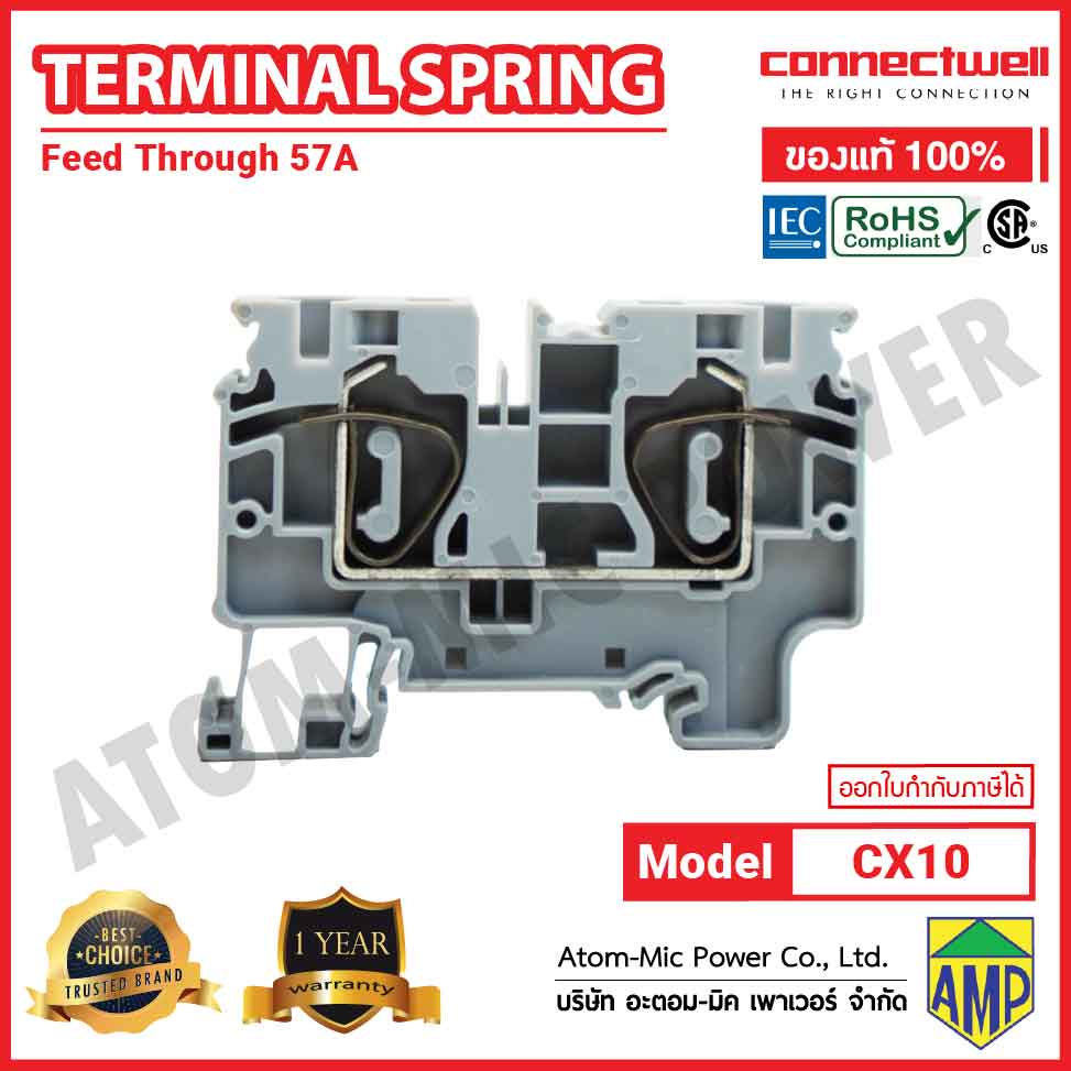 Connectwell – Spring Clamp Feedthrough Terminal Block – CX10 (Grey)