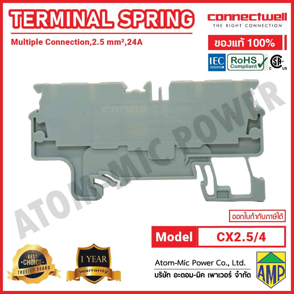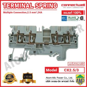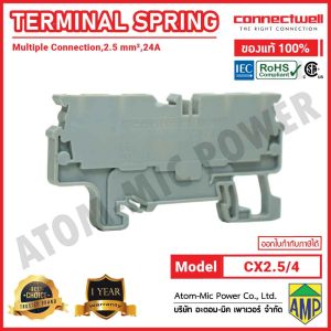 CX2.5/4BK is a spring clamp multiple connection terminal block in black colour with four connection points and a screwdriver operated spring mechanism for hands free wiring. The pre-stressed spring ensures a torque independent, maintenance free connection, ideal for vibration prone environments. It provides gas tight, vibration proof, and anti loosening connections, making it suitable for demanding industrial applications. The terminal block also features 2 row jumpering provision for easy cross connections using standard pluggable jumpers, enhancing wiring flexibility and system integration.