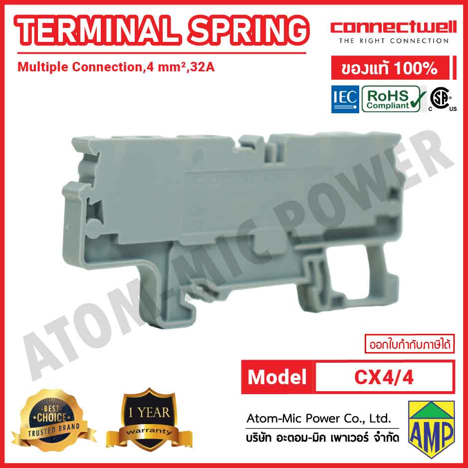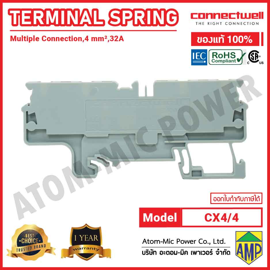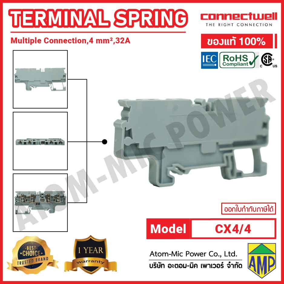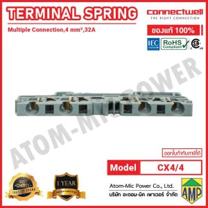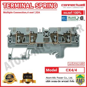 CX4/4 is a spring clamp multiple connection terminal block with four connection points and a screwdriver operated spring mechanism for hands free wiring. The pre-stressed spring ensures a torque independent, maintenance free connection, ideal for vibration prone environments. It provides gas tight, vibration proof, and anti loosening connections, making it suitable for demanding industrial applications. The terminal block also features 2 row jumpering provision for easy cross connections using standard pluggable jumpers, enhancing wiring flexibility and system integration.