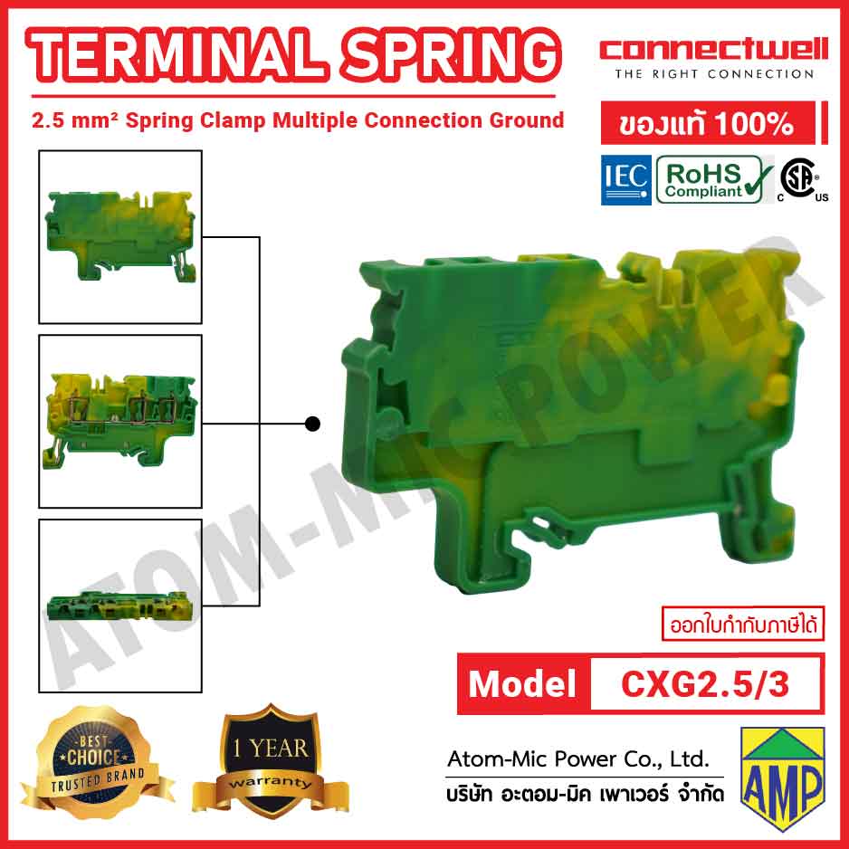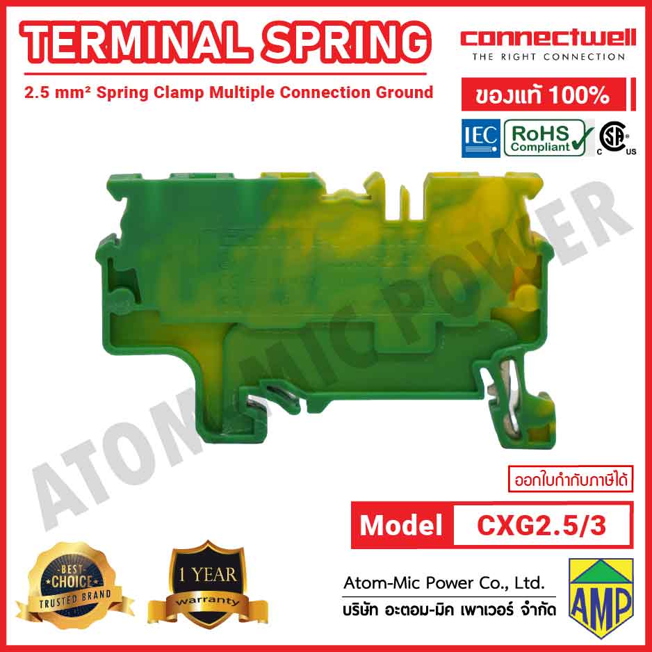 CONNECTWELL – Terminal Block Connector 3 Position Ground, Earth Green, Yellow – CXG2.5/3