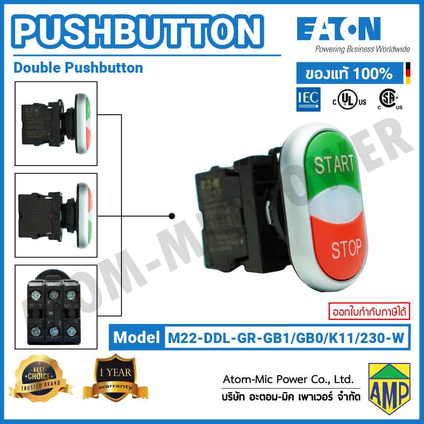 EATON – M22 Double Actuator Pushbutton, LED 230 V AC – M22-DDL-GR-GB1/GB0/K11/230-W