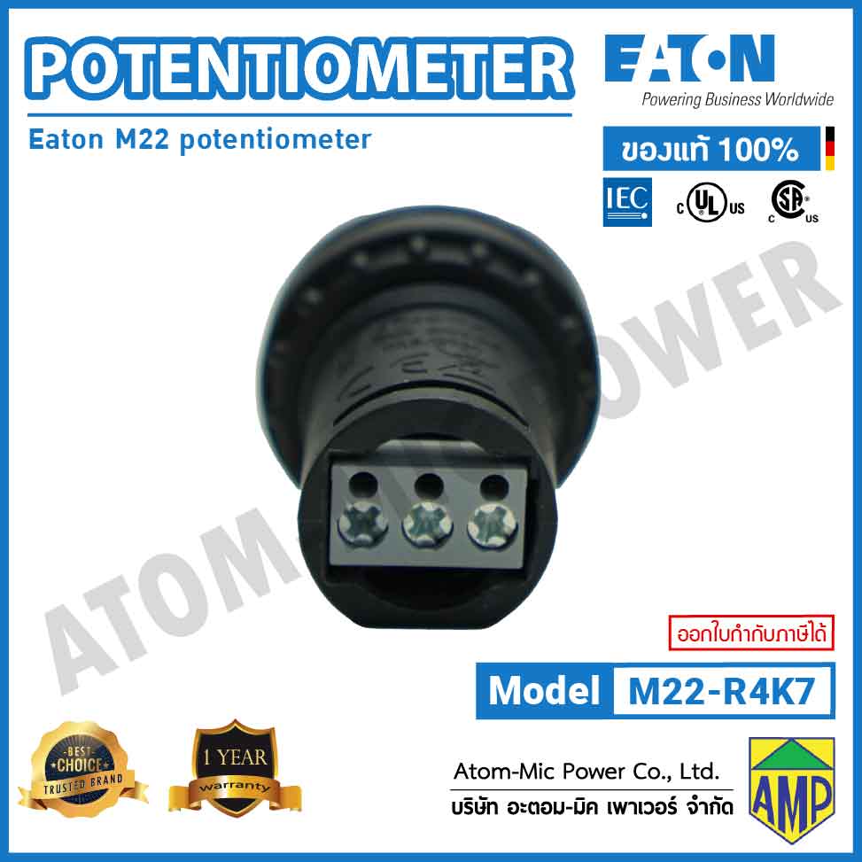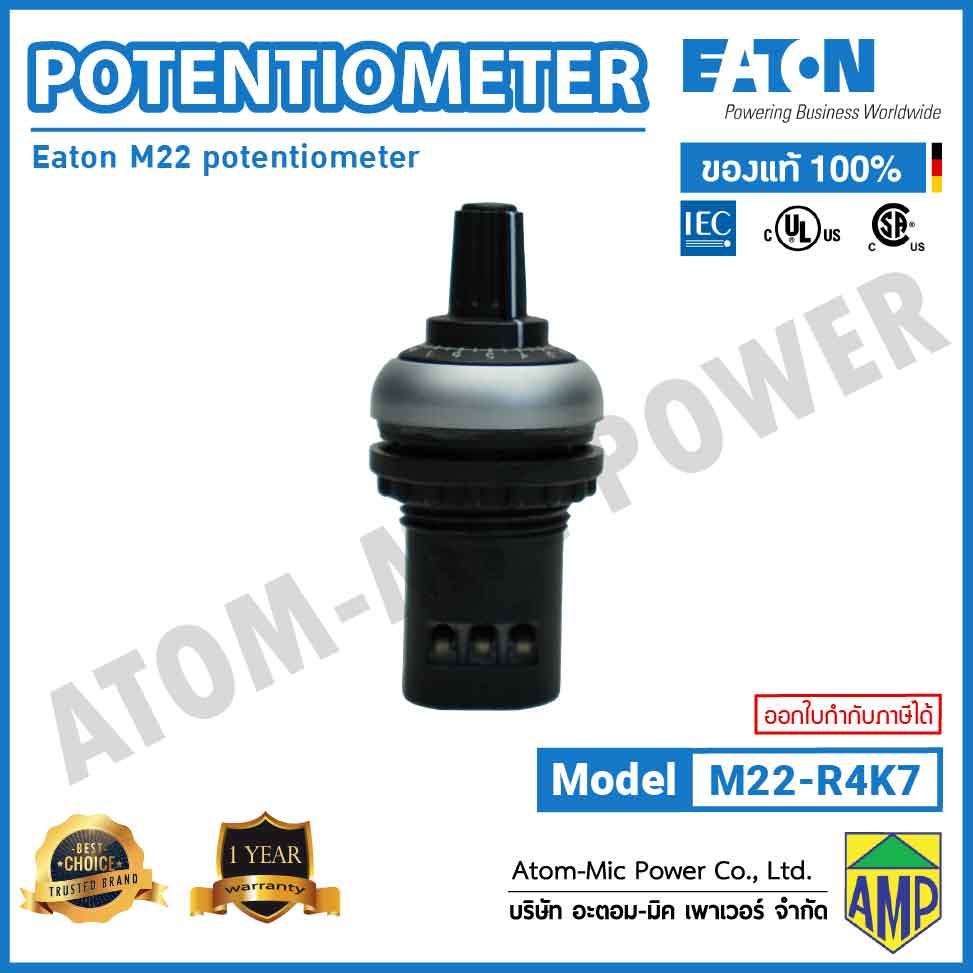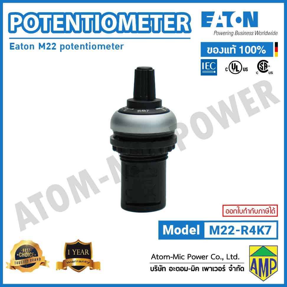 M22 Potentiometer, 22.5 mm, Knob, Bezel: Silver, Black, IP20, Quantity: 25