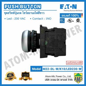 EATON – PUSH BUTTON SWITCH – M22-DL-W/K10/LED230-W (1 NO, 230 VAC) – ปุ่มกดแล้วเด้งกลับ โชว์สถานะไฟสีขาว
