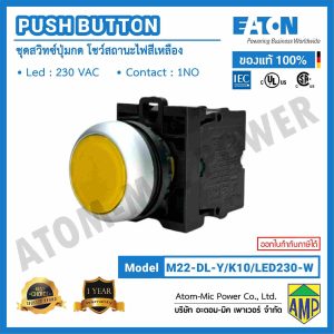 EATON – PUSH BUTTON SWITCH – M22-DL-Y/K10/LED230-W (1 NO, 230 VAC) – ปุ่มกดแล้วเด้งกลับ โชว์สถานะไฟสีเหลือง