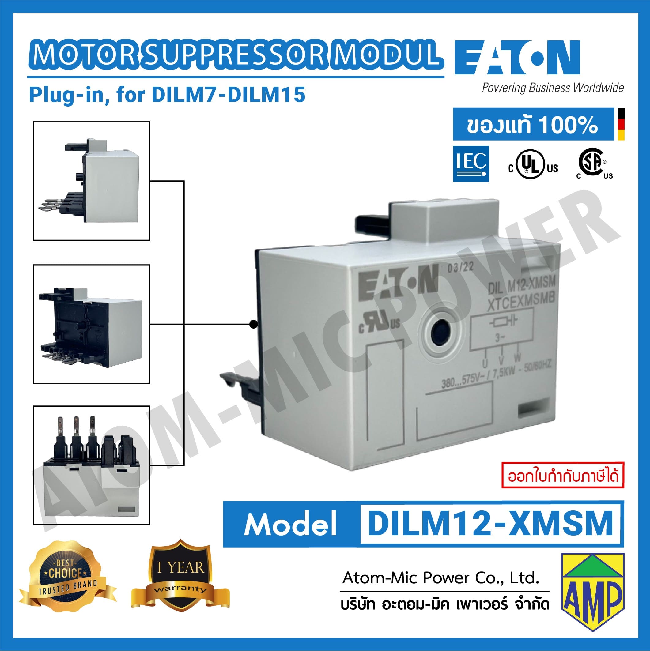 - ได้รับมาตรฐาน UL Recognized, UL Category Control No.: NMTR2, IEC/EN 60947-4-1, UL File No.: E300273, CE, UL 508
