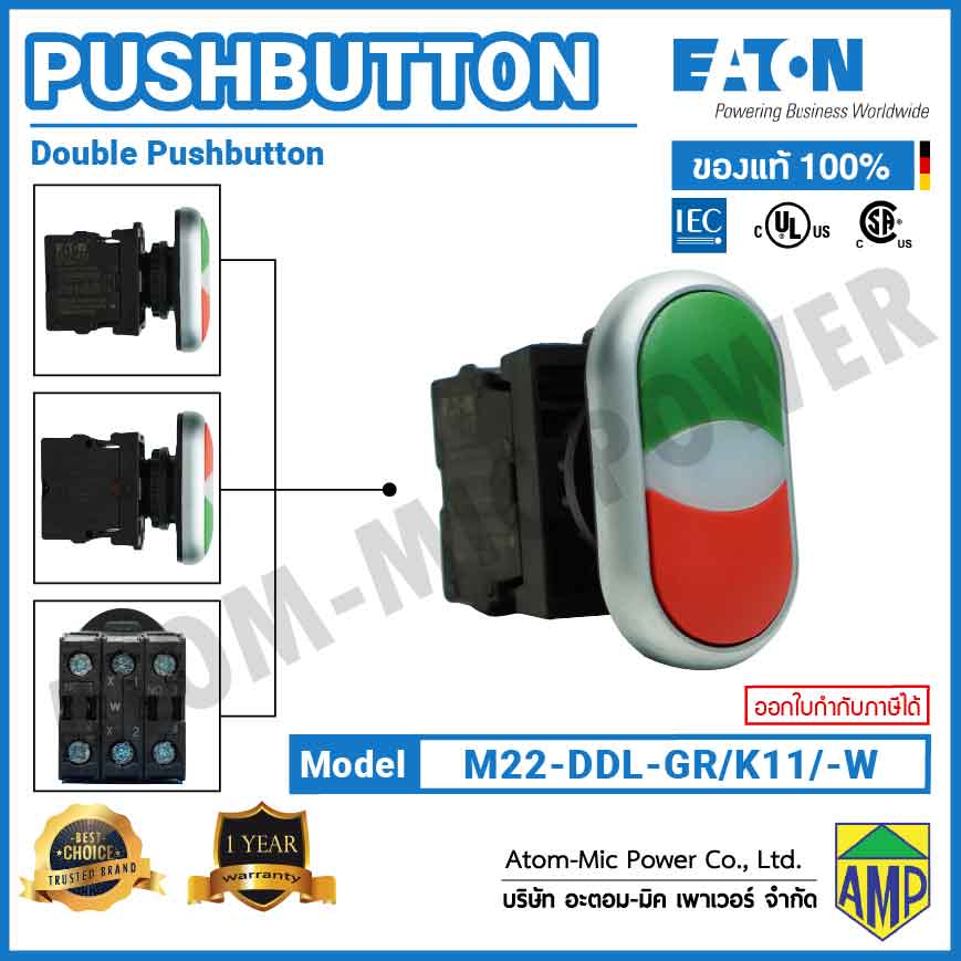 EATON – M22 Double Actuator Pushbutton, LED 24 V DC – M22-DDL-GR/K11/W