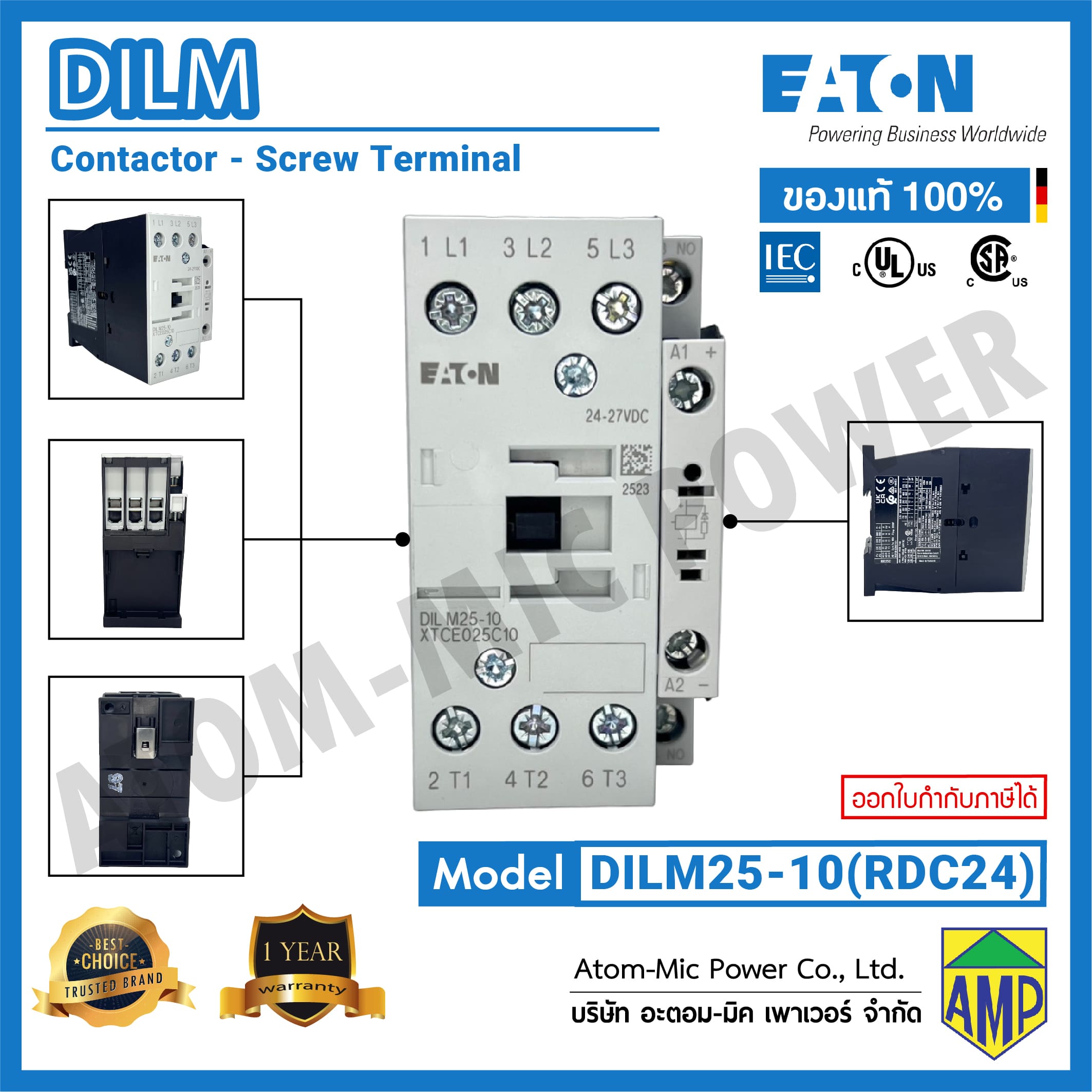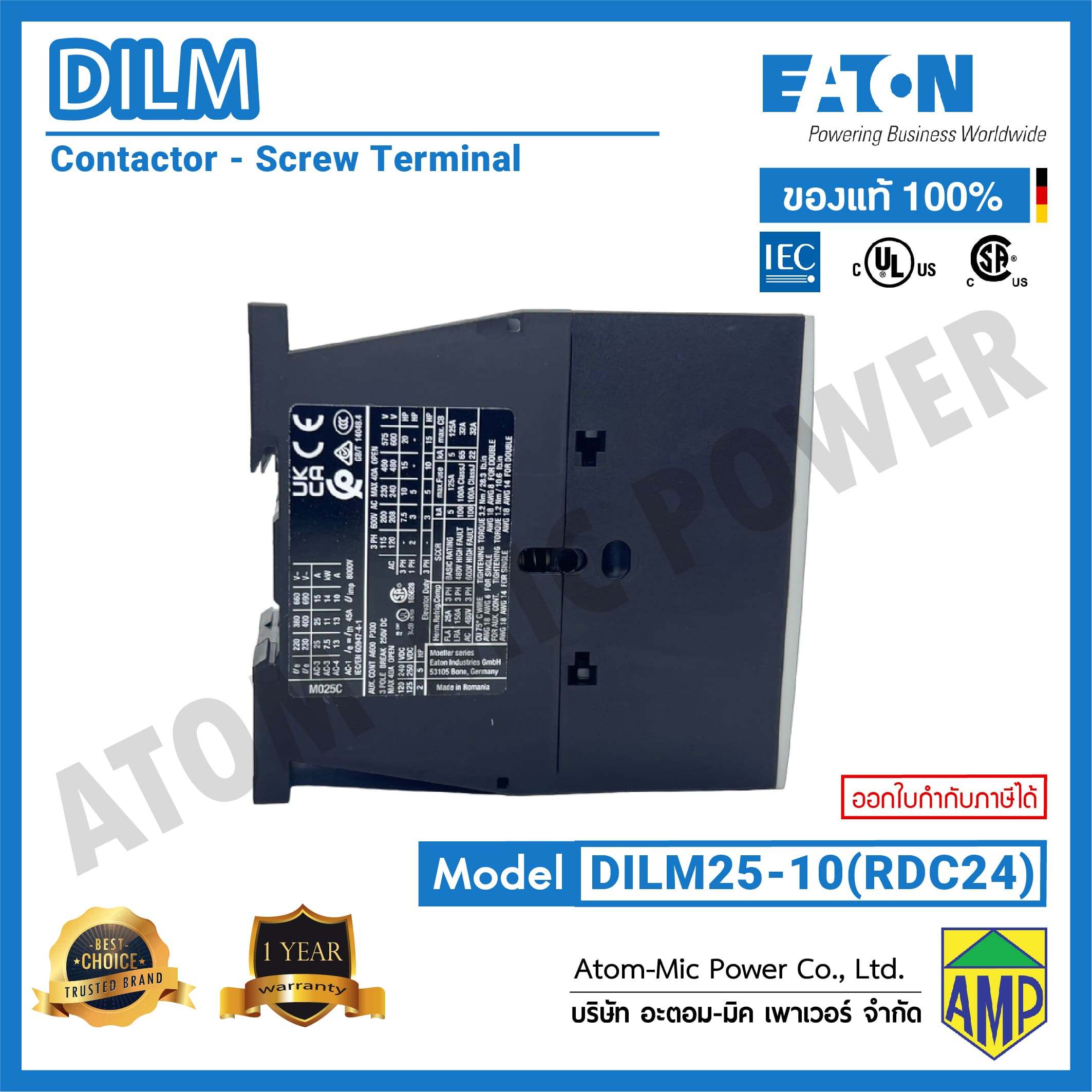 - มาตรฐาน IEC/EN 60947, VDE0660, UL, CSA