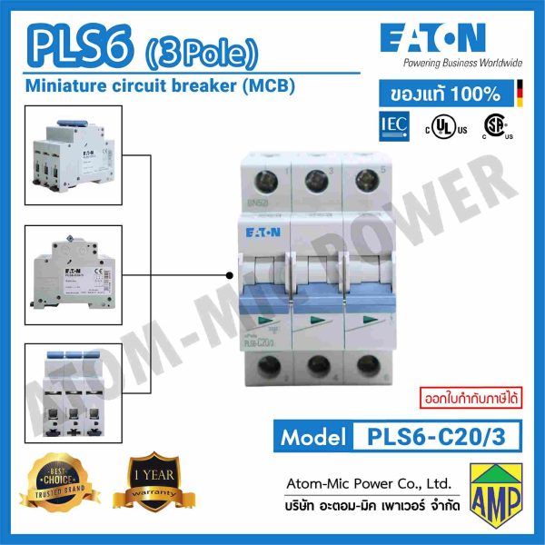 EATON – Miniature Circuit Breaker (MCB) – PLS6-C20/3 – เซอร์กิตเบรคเกอร์ขนาดเล็ก