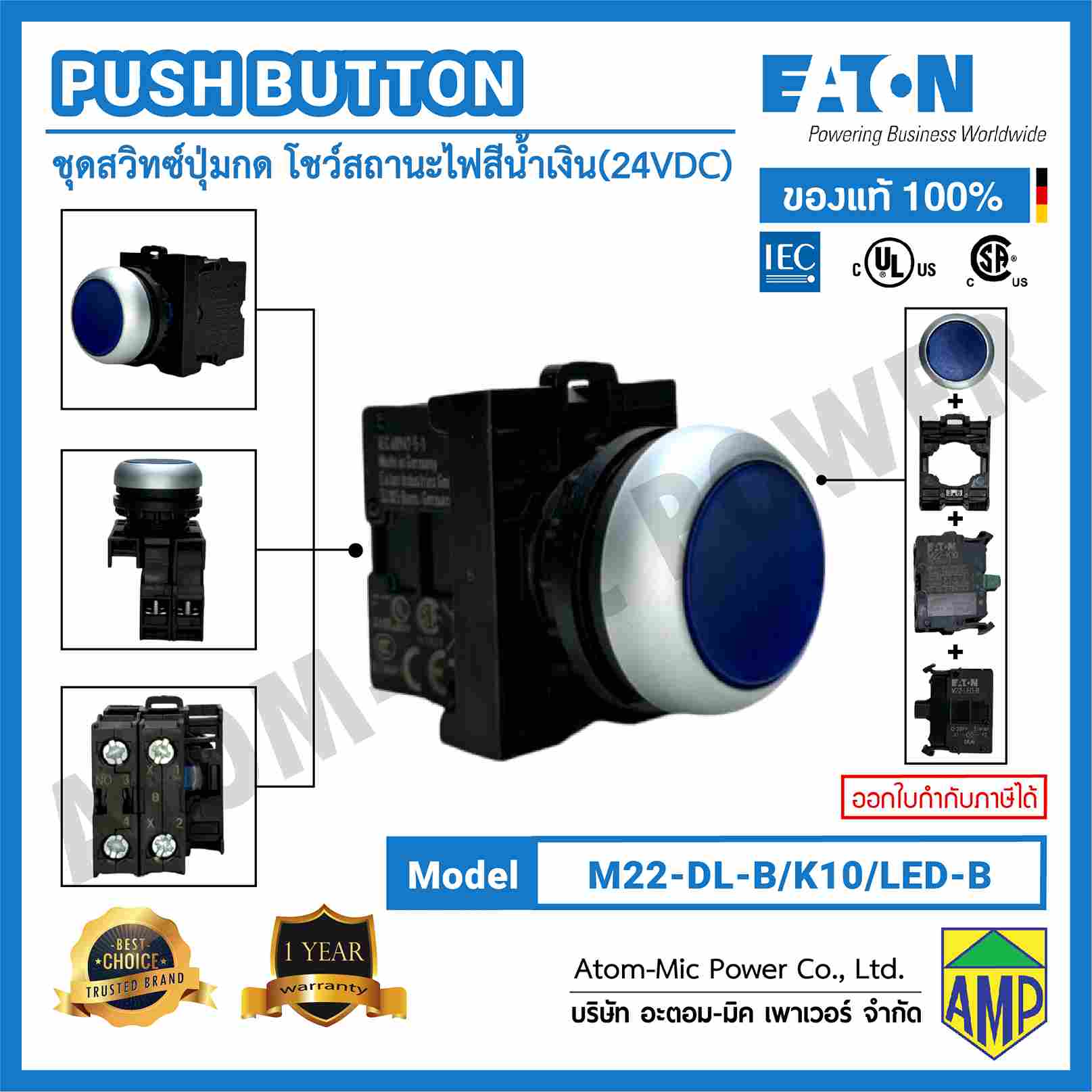EATON – PUSH BUTTON SWITCH – M22-DL-B/K10/LED-B (1 NO, 24 VDC) – ปุ่มกดแล้วเด้งกลับ โชว์สถานะไฟสีน้ำเงิน