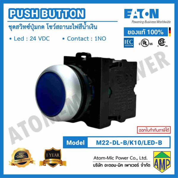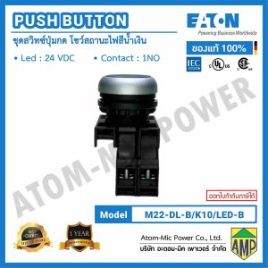 EATON – PUSH BUTTON SWITCH – M22-DL-B/K10/LED-B (1 NO, 24 VDC) – ปุ่มกดแล้วเด้งกลับ โชว์สถานะไฟสีน้ำเงิน