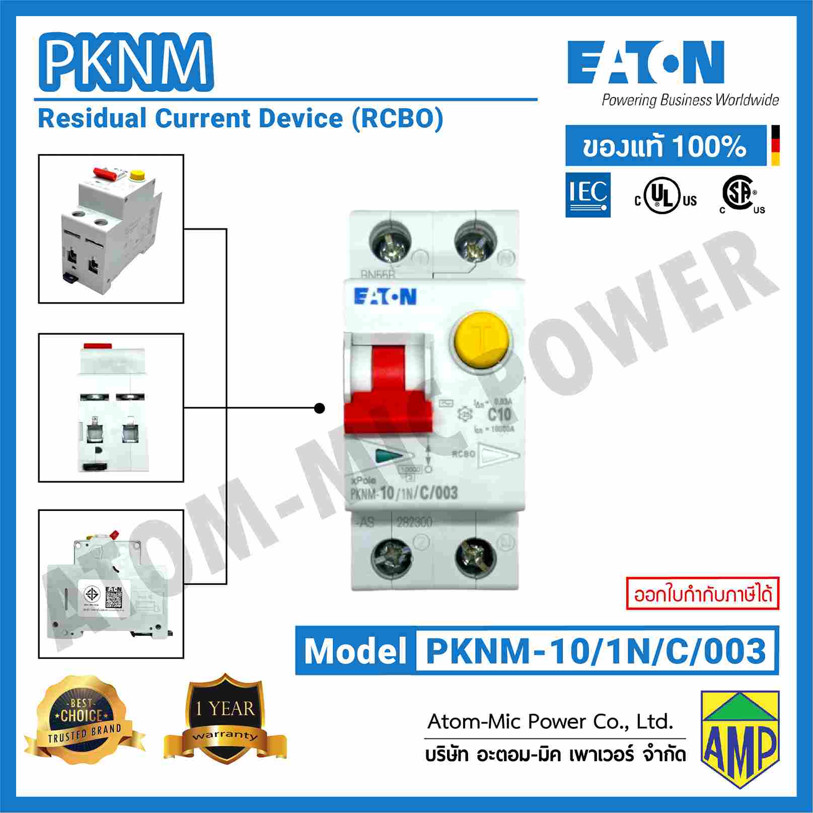 EATON – RESIDUAL CIRCUIT BREAKER OBJECT (RCBO) – PKNM-10/1N/C/003