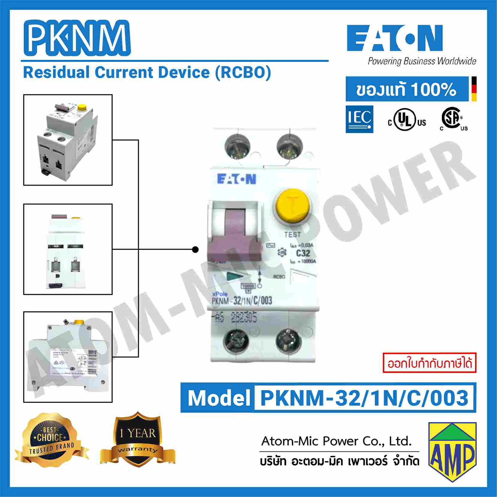 - มีพิดกระแส 6,10,16,20,25,32 และ 40 A ให้เลือกใช้