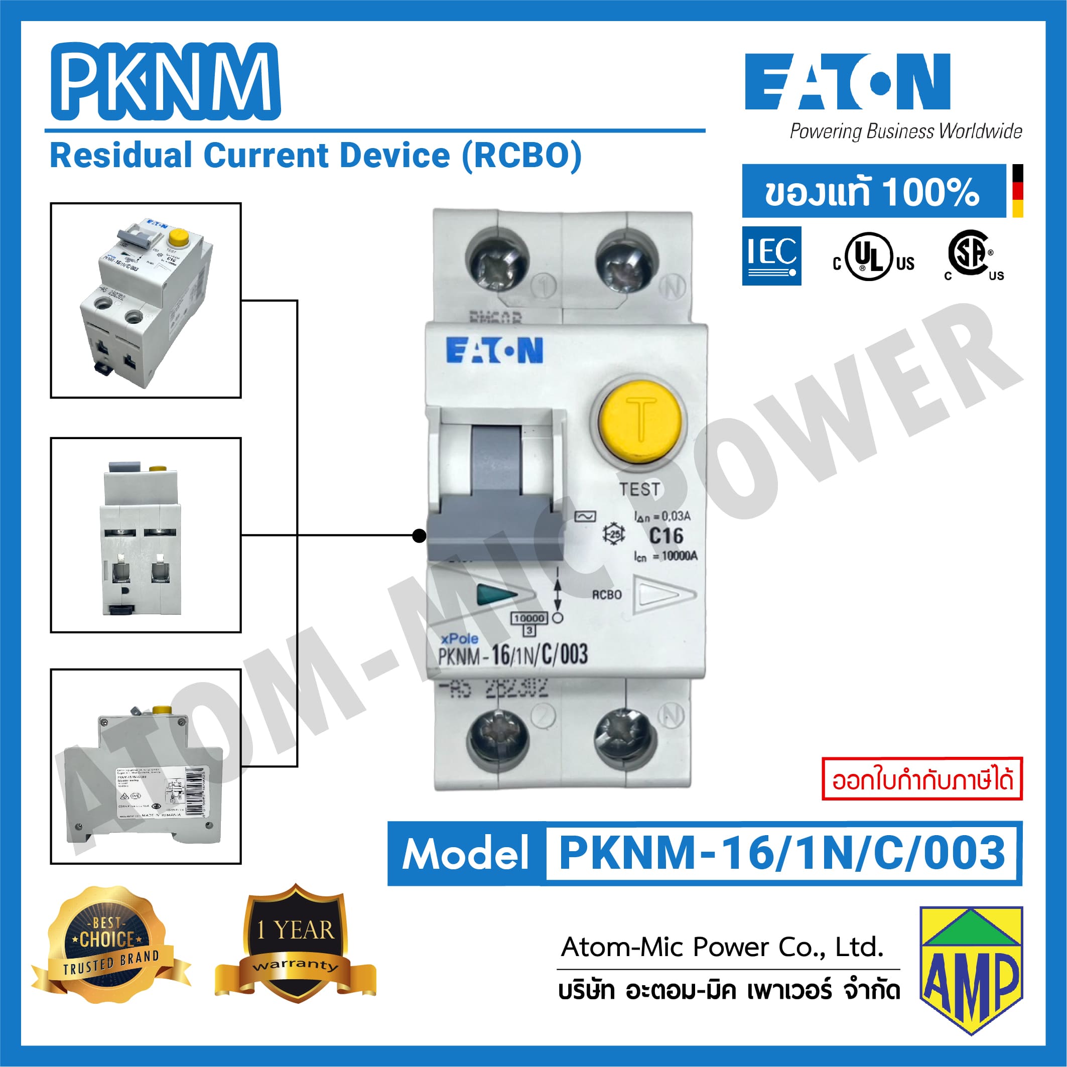 PKNM เป็นอุปกรณ์ป้องกันไฟดูด 1+N pole พร้อมเซอร์กิตเบรคเกอร์ภายในตัว (RCBO) ทำหน้าที่ตัดวงจรไฟฟ้าเมื่อเกิดรั่ว ไฟเกิน และตัดไฟลัดวงจร