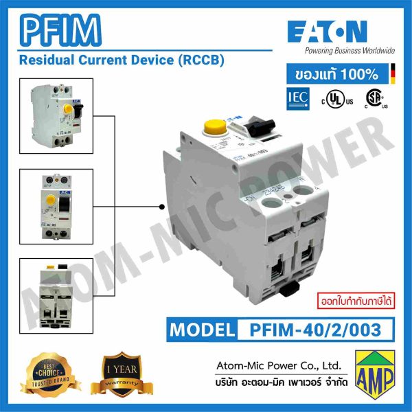 EATON – Residual current circuit breaker (RCCB), 40A, 2p, 30mA, type AC – PFIM-40/2/003