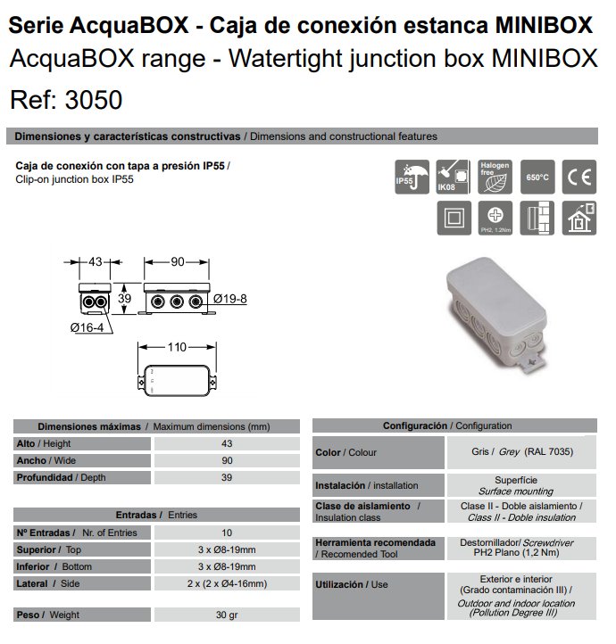 AcquaBOX range – Watertight junction box MINIBOX
