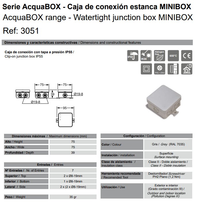 AcquaBOX range – Watertight junction box MINIBOX