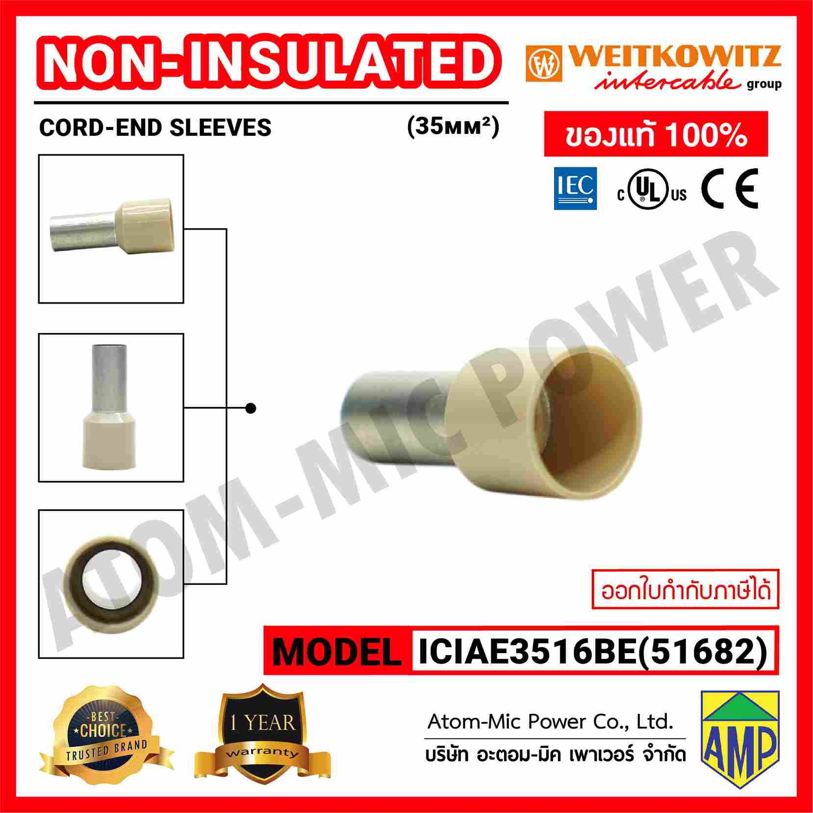 INTERCABLE(weitkowitz)-Non-insulated Cord-End Sleeves-หางปลาข้อต่อย้ำปลายสาย(แบบหุ้ม)-ICIAE3516BE(51682)